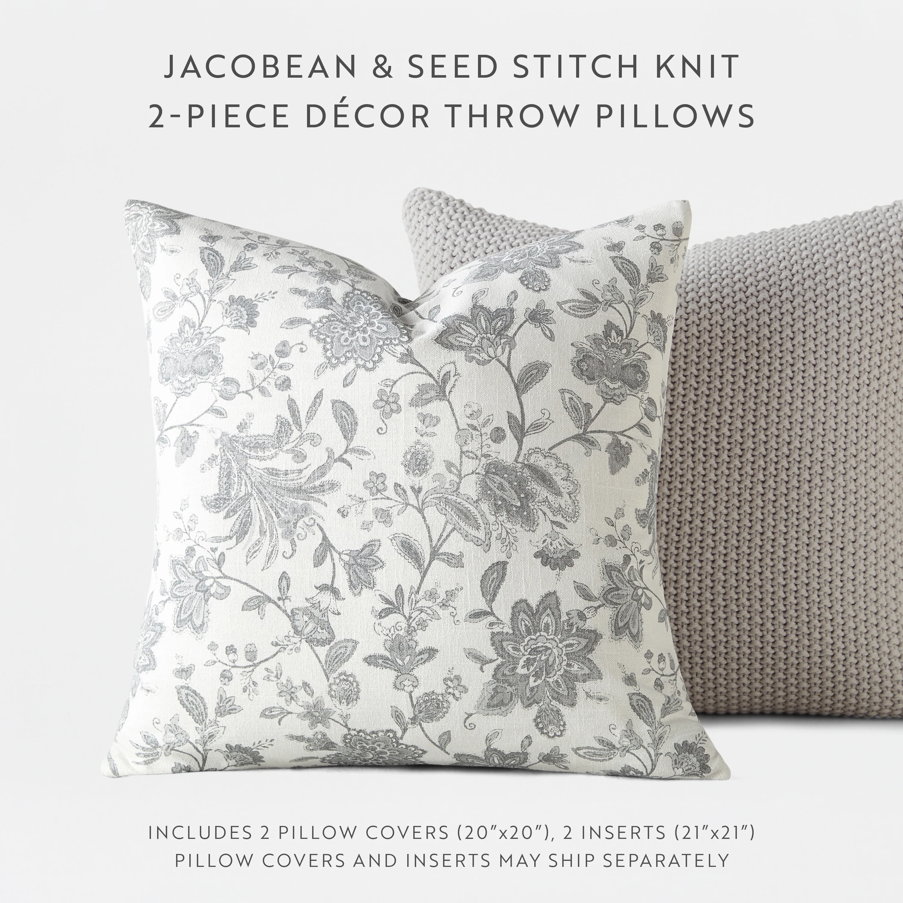 2-Pack Seed Stitch Knit With Jacobean Décor Throw Pillows