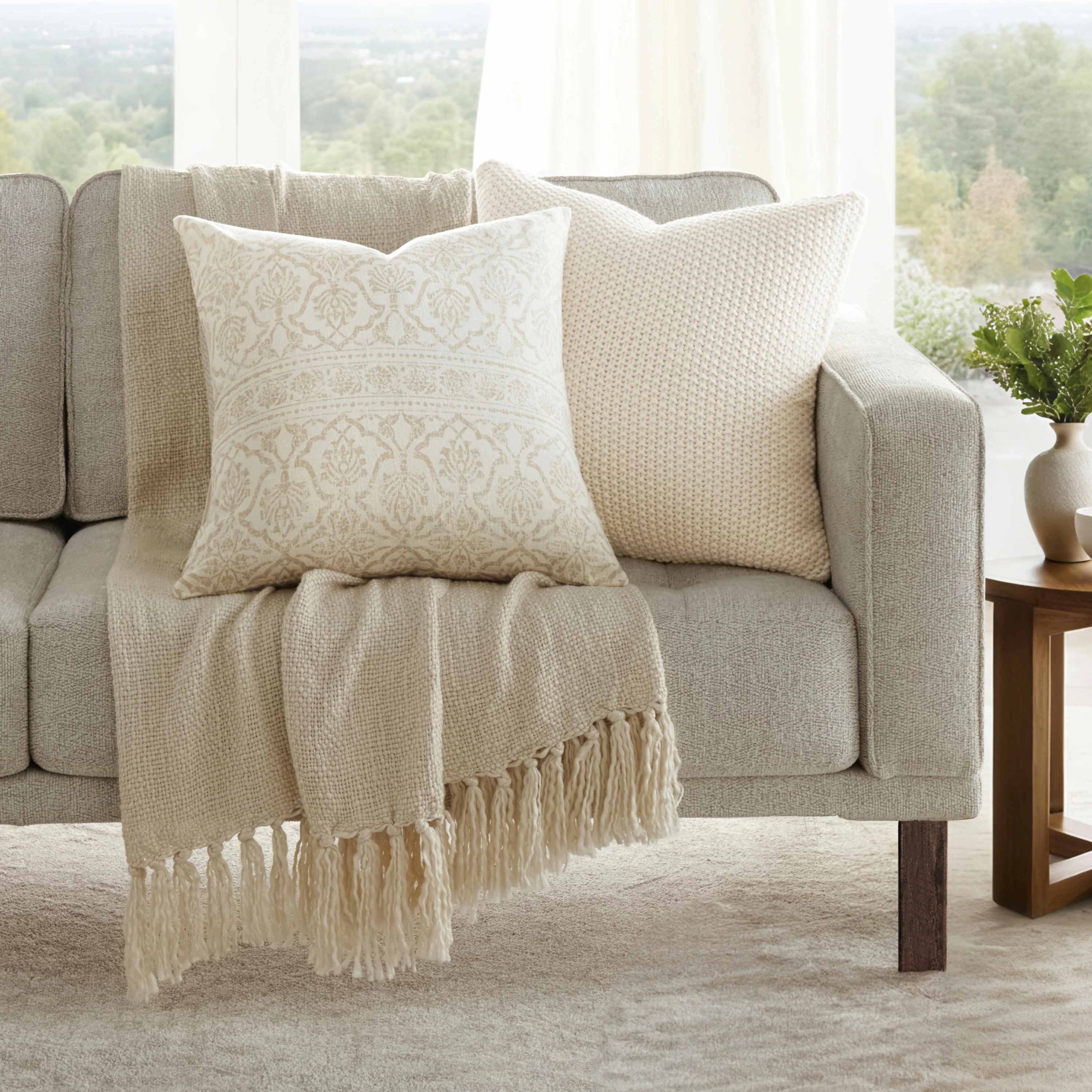 Introducing our pillow perfect duo: the ultimate home makeover combo! Elevate your home decor with our Seed Stitch Knit Acrylic Decor Throw Pillow and the Elegant Patterns Cotton Decor Throw Pillow with a removable cover. Our Seed Stitch Knit Pillow is pure luxury with its 100% acrylic cover and soft polyester liner. Choose from a captivating array of colors to complement any decor and create an inviting atmosphere filled with sophistication. The Elegant Patterns Cotton Decor Throw Pillow offers a whole new dimension of creativity with its removable cover and invisible zipper closure. Swap covers to match your mood or decor, giving you the flexibility to redefine your style effortlessly. Transform your home today and embrace the perfect blend of comfort and style with our pillow perfect duo!