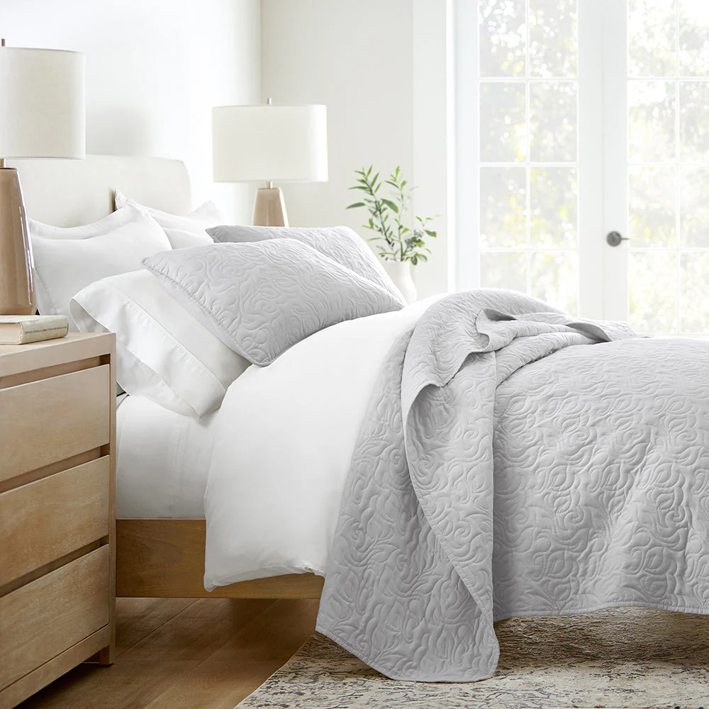 Give your room a comfy new addition with this ultra soft quilted coverlet set with shams! We've generously filled it with artificial down, and each piece is double brushed to give it that super soft, cozy feel. The beautiful, subtle quilted stitchings add dimension and a gorgeous touch to any bedroom. Spun from our premium yarns, this set is twice as strong as cotton, wrinkle resistant and a perfect option for those with allergies or sensitive skin. Available in 3 elegant stitched designs of striped, floral and diamond, elevating the look and feel of any bedroom. The sets are available in 6 gorgeous colors, it'll be hard to pick only one for your bed refresh!