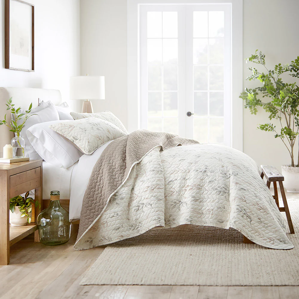 Watercolor Leaves Reversible Quilted Coverlet Set - Sale